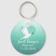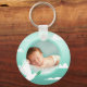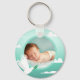 Celebrate your baby boy's special baptism day with this beautiful keychain featuring a serene design. The artwork showcases a peaceful white dove carrying an olive branch, soaring through soft clouds against a gentle teal gradient. This keepsake allows you to cherish your baby's precious photo, making it a perfect memento of this sacred milestone. The design evokes a sense of peace, purity, and new beginnings, ideal for commemorating such a significant religious event.
