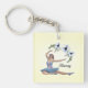 Hermosa bailarina de tutu azul y zapatillas posadas en posición de estar.