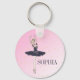 Un anillo especial de llave de ballet para la bailarina. Este llavero tiene su propio nombre personal. El diseño se personaliza fácilmente introduciendo su propio nombre. La Ballerina se presenta con un fondo de color rosa.