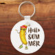 Un banano divertido vestido todo para el verano con el mensaje hola verano. Este diseño parece realmente efectivo en esta cadena de claves