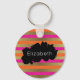 Cadena de teclas personalizada con un elegante patrón compuesto por rayas horizontales rosadas, naranjas y de oro falso. Una moderna y fresca salpicadura negra invadió el centro con tu texto en el medio.