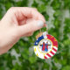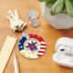 Cadena de botones con bandera de la ciudad de Detroit, Michigan; bandera roja, blanca y azul con estrellas y rayas, fleur-de-lys, dragones y sello de la ciudad