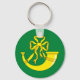 Cadena de claves con diseño con una bandera del histórico condado de Huntingdon, en Inglaterra, Gran Bretaña; bandera verde con un cuerno de caza con cinta de oro