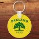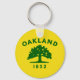 Cadena de claves con la bandera de Oakland, California. Una bandera amarilla con un árbol verde