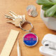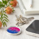 Cadena de teclas redondas premium con la bandera del orgullo bisexual con pequeños corazones en el centro del diseño. Bandera rosa, púrpura y azul del movimiento de orgullo bi; con un campo de texto editable para tu nombre o mensaje