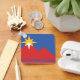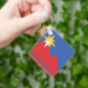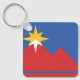 Keychain con un diseño con la bandera de Pocatello, Idaho. Una bandera azul con montañas rojas y una estrella amarilla