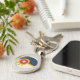 Keychain con un diseño con la bandera de Tulsa, Oklahoma. Bandera beige y azul marino con un escudo Osage dorado que contiene un círculo rojo y una estrella beige de seis puntas
