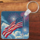 Llavero Bandera Patriótica Americana con fuegos artificial