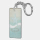 Este llavero acrílico en los suaves colores del mar y la arena le permite añadir fácilmente su propio nombre y texto usando la plantilla proporcionada. La simple imagen de pez estrella sobre un fondo acuático angustiado se ve resaltada por un acento ondulado en agua y blanco. Busque ID623 para ver la coordinación de elementos costeros y productos adicionales con este diseño.