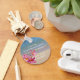 La cadena de claves favoritas de bodas en la playa cuenta con una fotografía de hermosas flores de playa y plumeria rosa. Texto de plantilla para que el personalizar tenga la fecha de boda, los nombres de la novia y del novio y un mensaje de agradecimiento a los invitados bodas. Hay descuentos disponibles para pedidos masivos.