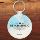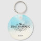La llave tiene características de acuarela de playa, agua, arena y la palabra "beachaholic" con un acento decorativo y chanclas. Agrega tu nombre para personalizar.