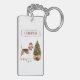 Un lindo beagle es humorístico usando un atuendo de Navidad. Mirando al lado de un árbol de vacaciones, dejó huellas de pata lodosa. "Paws" y mandan regalos graciosos a los Navidades de vacaciones.