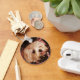 Bebé en una bolsa con fotografía maltesa de un cachorro maltés blanco en miniatura descansando en una bolsa (portador mascota). La bolsa es marrón chocolate con guarnecido rosa y puntos de polka rosados y amarillos. El cachorro está asomando su cabeza fuera de la ventana superior de la bolsa y descansando por un lado. La lengua de los Cachorros también está colgada. Un regalo maltés perfecto, lindo como botón para tus amigos y seres queridos. Revisa mis tiendas Zazzle para más regalos malteses también. Siéntase libre de personalizar con el texto que se adapte, añada un nombre de pups si lo desea.