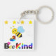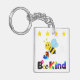 La palabra de "Bee Kind" con una abeja linda que lleva un corazón con rompecabezas de autismo para crear conciencia sobre la comprensión y el respeto a la diversidad y la inclusión.