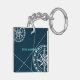 Las cadenas de Rosas de la brújula Nautical Navy Blue Welcome Aboard presentan un diseño moderno con rosas de brújula y líneas de navegación en blanco sobre un fondo azul marino. Personalice la cadena de claves con el nombre y la ubicación del puerto de su barco. Este elegante diseño costero también es un gran regalo para el propietario de un barco.