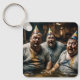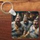 Three chubby guys in a hilarious post-birthday mess. Carry humor and chaos wherever you go with this playful keychain art.