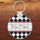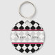 Cadena de teclas con fondo de argyle negro con guarnecido rosado caliente. Personalice su nombre en la sección central.