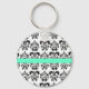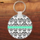 LLAVERO BLANCO NEGRO DAMASK FLORAL AQUA AZUL FRANJA VERDE