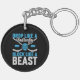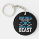 La cadena de hockey Goalie con texto en azul y blanco, casco con máscara, patines y palos de hockey dice Drop Like a Butterfly Block Like a Beast!