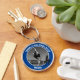 This cute customized high school drill team photo gift features white typography of your team and dancer name on a blue keychain with a silhouette of a girl holding pom poms in boots. Personalize with your student's photograph and class year as a proud parent.