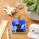 Llavero Blue White Tropical Island Black Dog Keychain