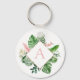 Ubicación de destino: Llavero de monograma para boda de primavera con palmeras tropicales de playa botánica con acuarela rosa y verde (llavero): incluye tipografía de guión hermosa y elegante con hojas botánicas modernas y follaje para el regalo especial para una boda, ducha de novia (novia o dama de honor), ducha de bebé, fiesta de despedida de soltera, dulces 16, 16, 18, 21, 30, 40, 50, 60, 70, 80, 90, 100 cumpleaños.