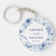 Agregue un toque atemporal a los recuerdos de su boda con este llavero de boda floral azul elegante. Con un hermoso diseño floral de acuarela en azul y blanco, este recuerdo elegante es perfecto para regalar a los invitados, recuerdos de la ducha de la novia o souvenirs de la fiesta de compromiso, ofreciendo un recordatorio práctico y elegante de su día especial.