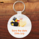 Dos bonitos patos amarillos de goma vestidos como novia y novio. Dos patos de beso Guardar la tarjeta de fecha con texto de personalizable para tu propio mensaje especial, nombres, guardar la fecha o añadir tu propia imagen.