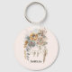 Cadena de llaves con un ramo de flores de bonito en colores neutros de marrón, melocotón y naranja. Un soñador con plumas añade un elegante toque místico.