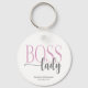 Este llavero rosado y gris de la "Dama de Jefe" es un regalo excelente para una jefa. Tienes la opción de personalizarla con su nombre y número de teléfono, o puedes elegir dejarla sin personalización. Para el personalizar, simplemente haga clic en "Personalizar este diseño", y Zazzle se encargará del resto.