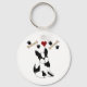 Un lindo Boston Terrier en el centro. Las huellas de pata negra, huesos y corazones rojos acentúan esta cadena para tus llaves.