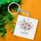 Elegant white floral keychain, perfect for bridesmaids and special occasions. This personalized keychain is a lovely keepsake for weddings, anniversaries, and events. Its delicate floral design adds a touch of charm, making it a wonderful gift for your loved ones. Ideal for keeping keys organized or as a decorative accessory, this keychain is both practical and stylish. Celebrate your special moments with this beautiful personalized item!