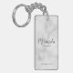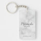 Añada un toque personal a su boda con la cadena de claves personalizada de la dama de honor. Esta cadena de claves presenta el nombre personalizado de la dama de honor en el estilo de letra de escritura moderno gris con título y fecha boda en el estilo de fuente sans serif moderno gris sobre fondo de mármol blanco. También perfecto para la criada de honor, madre de la novia y más. Los detalles de mármol se simulan en las obras de arte. Este producto no será fabricado con mármol real.