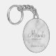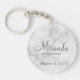Añada un toque personal a su boda con la cadena de claves personalizada de la dama de honor. Esta cadena de claves presenta el nombre personalizado de la dama de honor en el estilo de letra de escritura moderno gris con título y fecha boda en el estilo de fuente sans serif moderno gris sobre fondo de mármol blanco. También perfecto para la criada de honor, madre de la novia y más. Los detalles de mármol se simulan en las obras de arte. Este producto no será fabricado con mármol real.