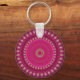 This button keychain, zip pull, features a complex dark pink with yellow coloured mandala design that I created from a photograph of pink flowers with yellow centres. Perfect to keep your keys safe or as a colourful accessory.