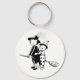 Una pequeña bruja y un payaso en un palo de escoba. Este diseño parece realmente efectivo en esta cadena de claves