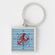 El llavero de rayas horizontales azul y blanco brillante con temática marina incluye bogavante y brújula de barco.
