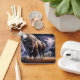 Escena dinámica con un búfalo parado alto y un lobo en medio de un telón de fondo tormentoso, evocando naturaleza indomable y poder crudo.