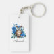 Llavero Búho azul de color de agua y Rosas de diseño