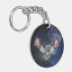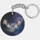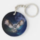 Fauna asombrosa. El búho de gran gris o el búho de gran gris es un búho muy grande, documentado como la especie más grande del mundo de búho por longitud. Búho en vuelo, cielo oscuro con las estrellas y luna azul.