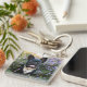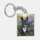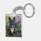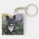 Un Bulldog francés está florido al aire libre y mira alegremente a la cámara.