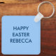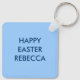 Esta linda cadena de teclas muestra una adorable imagen de un conejito feliz creado con arte vectorial. El conejito es gris y tiene una gran sonrisa en la cara. El conejo está eclosionando con un huevo. Este diseño extraño y divertido seguramente divertirá a cualquiera. Hay texto personalizado en la parte posterior para que pueda incluir un nombre y un mensaje.