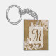 Burlap Country Lace Applitic Fabric Patrón de impresión Monograma Cadena de claves inicial personalizada