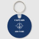 Nautical Compass Anchor Capitán Añadir nombre o nombre de barco Blue Keychain