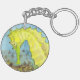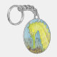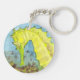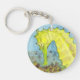 Una acuarela de un caballito de mar amarillo vibrante adorna esta cadena de llaves.