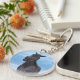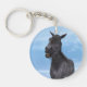 Representación digital 3D de un lindo caballo negro con ojos azules sobre fondo azul del cielo