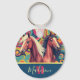Llavero Caballos marrones con el nombre de patrón colorido