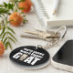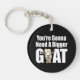 Divertido llavero "Necesitarás una cabra más grande" para que tus llaves sean útiles. Este llavero tiene un texto blanco y un fondo negro con una cabra sonriente.