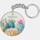 Este hermoso llavero con un ilustracion de cactus y un suculento es el regalo perfecto para alguien que ama estas maravillosas plantas. Este diseño atrevido y hermoso es definitivamente llamativo. El nombre de la cadena de claves es personalizable y haría un gran regalo personalizado.