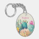 Este hermoso llavero con un ilustracion de cactus y un suculento es el regalo perfecto para alguien que ama estas maravillosas plantas. Este diseño atrevido y hermoso es definitivamente llamativo. El nombre de la cadena de claves es personalizable y haría un gran regalo personalizado.